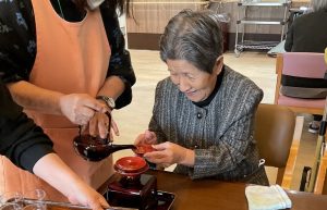昼食にお重のおせち料理や、お雑煮を召し上がっていただきました